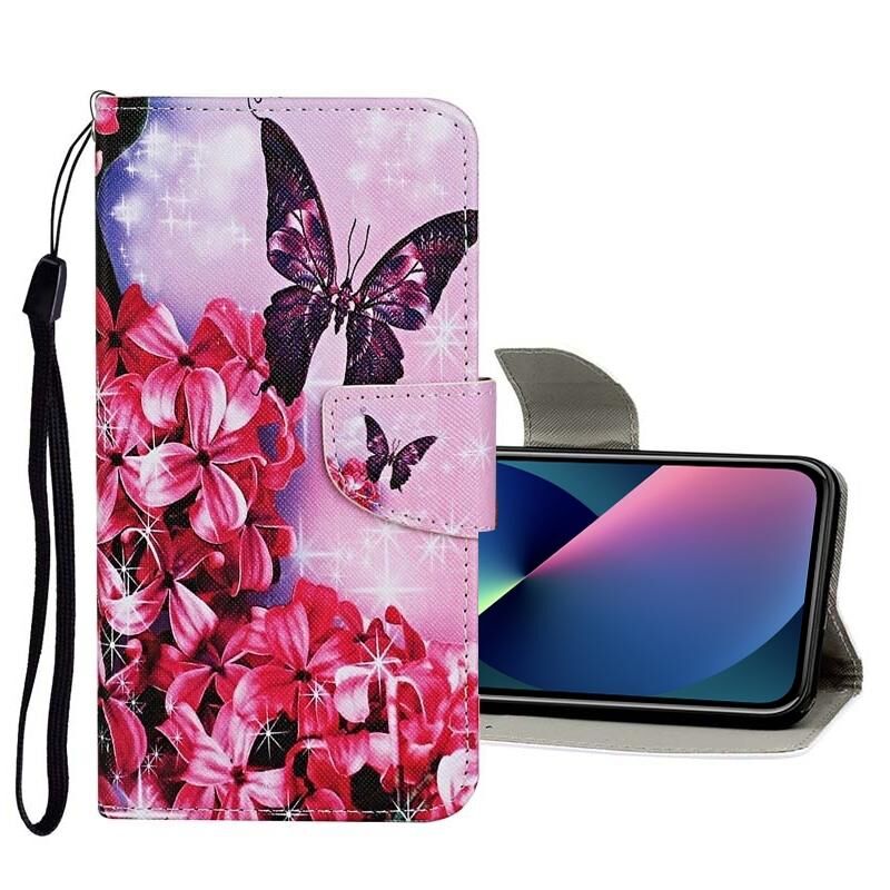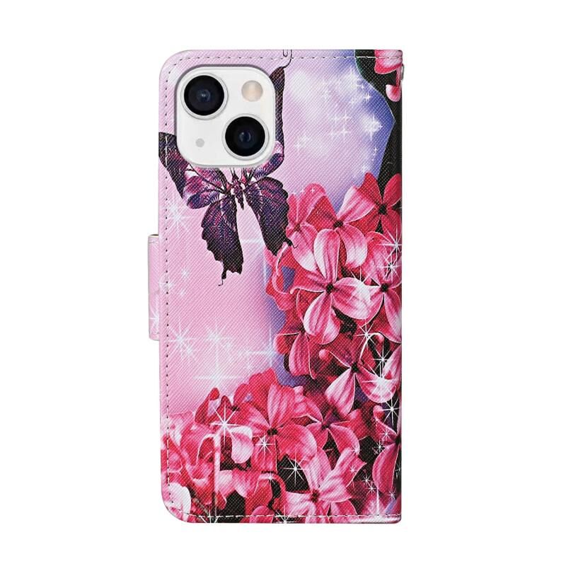 Θήκη δέρματος τύπου flip με σχέδιο ζωγραφικής και χρώματα για iPhone 13 mini (Κόκκινο Λουλούδι Πεταλούδα)