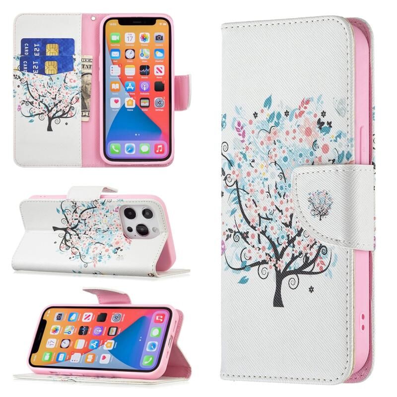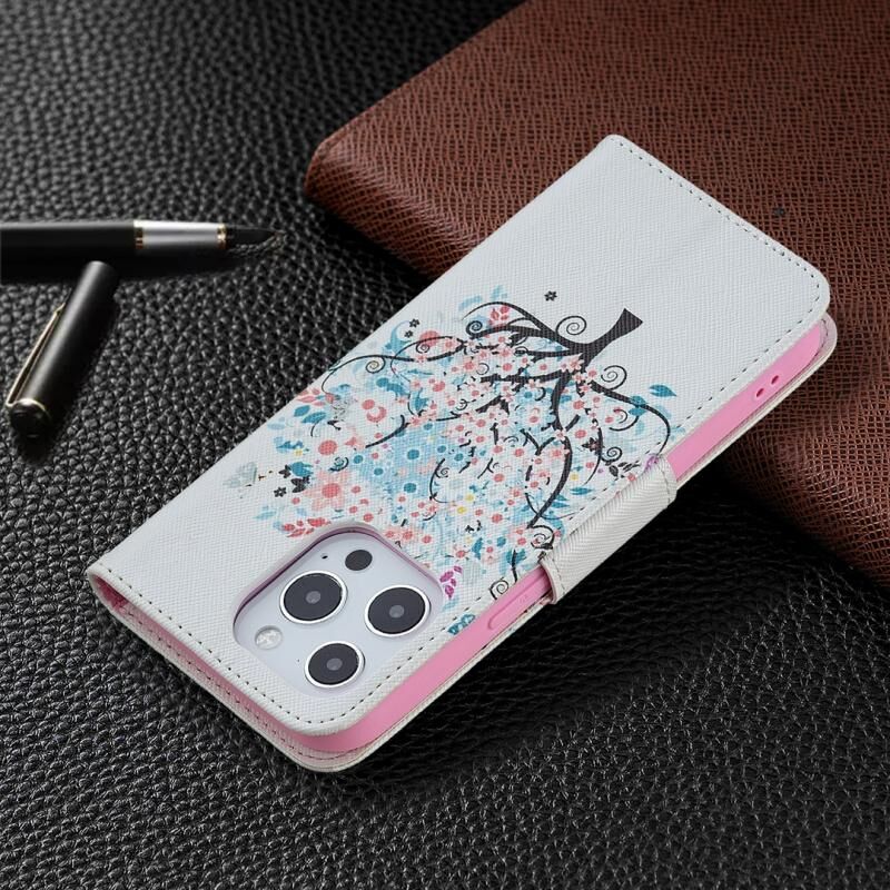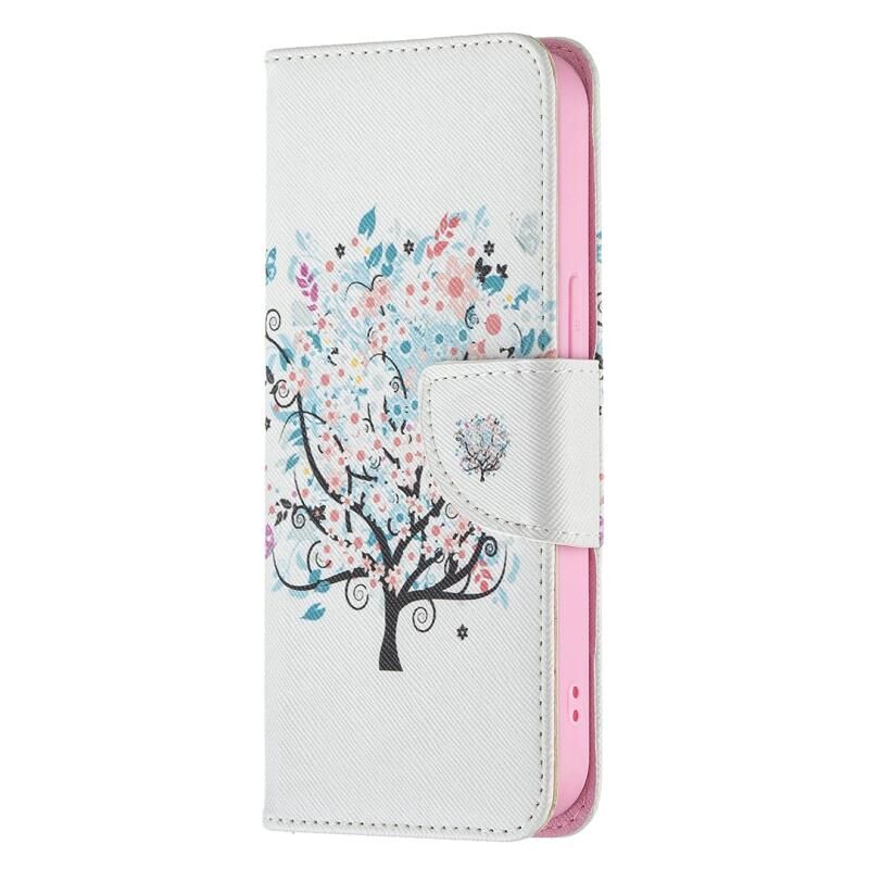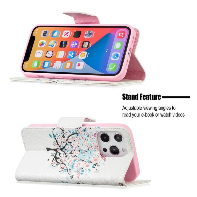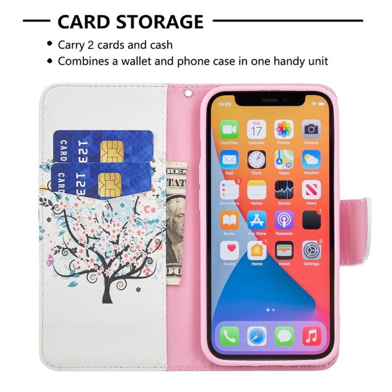 Θήκη δέρματος οριζόντιας αναδίπλωσης με σχέδιο πολύχρωμης ζωγραφικής για iPhone 13 mini με βάση & θήκες καρτών & πορτοφόλι (Κόκκινο)