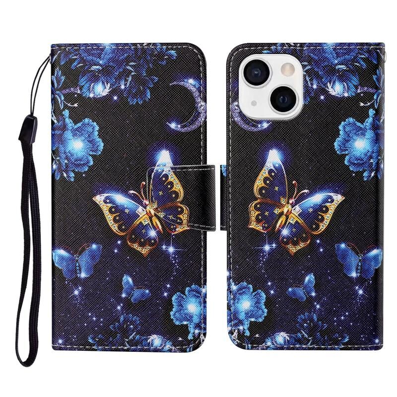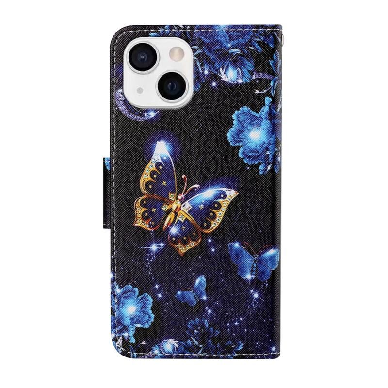 Θήκη τηλεφώνου δερμάτινη οριζόντιας αναδίπλωσης με σχέδιο πολύχρωμης ζωγραφικής για iPhone 13 mini (Πεταλούδα Σελήνης)