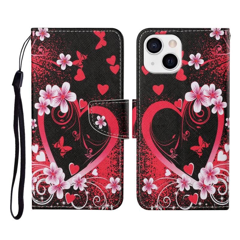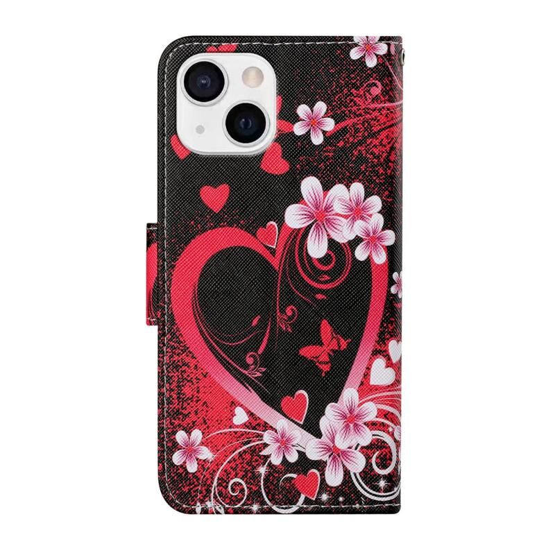 Θήκη τηλεφώνου δερμάτινη οριζόντιας αναδίπλωσης με σχέδιο πολύχρωμης ζωγραφικής για iPhone 13 mini (Μαύρος Πλανήτης)