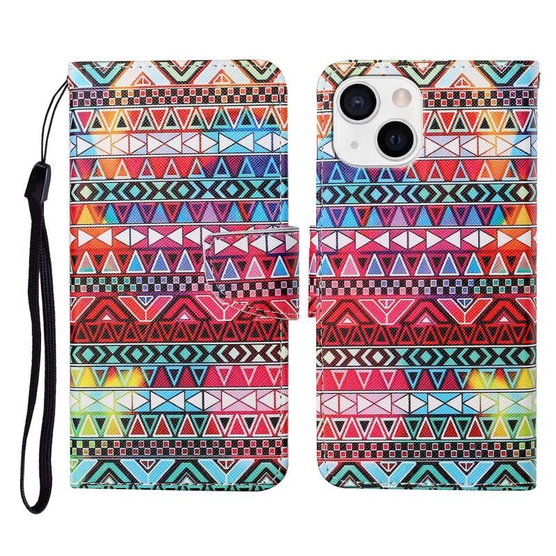 Θήκη τηλεφώνου δερμάτινη οριζόντιας αναδίπλωσης για iPhone 13 mini με έγχρωμο σχέδιο (Εθνικό φυλετικό στυλ)