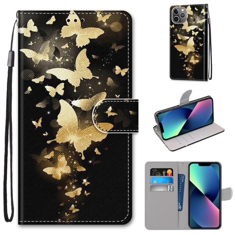 Θήκη για iPhone 13 mini με πολύχρωμο σχέδιο, υφή σταυρού, οριζόντια αναδίπλωση από δερματίνη PU με βάση & θήκες για κάρτες & πορτοφόλι & κορδόνι (Ροζ Λουλούδι Πύργος της Γέφυρας)