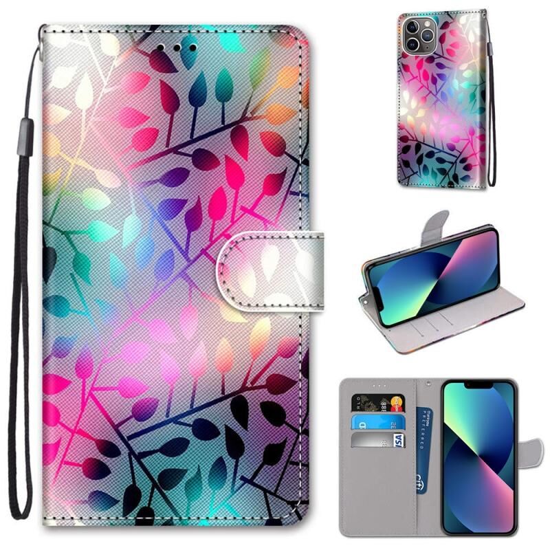 Θήκη για iPhone 13 mini με πολύχρωμο σχέδιο, υφή σταυρού, οριζόντια αναδίπλωση από δερματίνη PU με βάση & θήκες για κάρτες & πορτοφόλι & κορδόνι (Διαφανές Γυαλί)