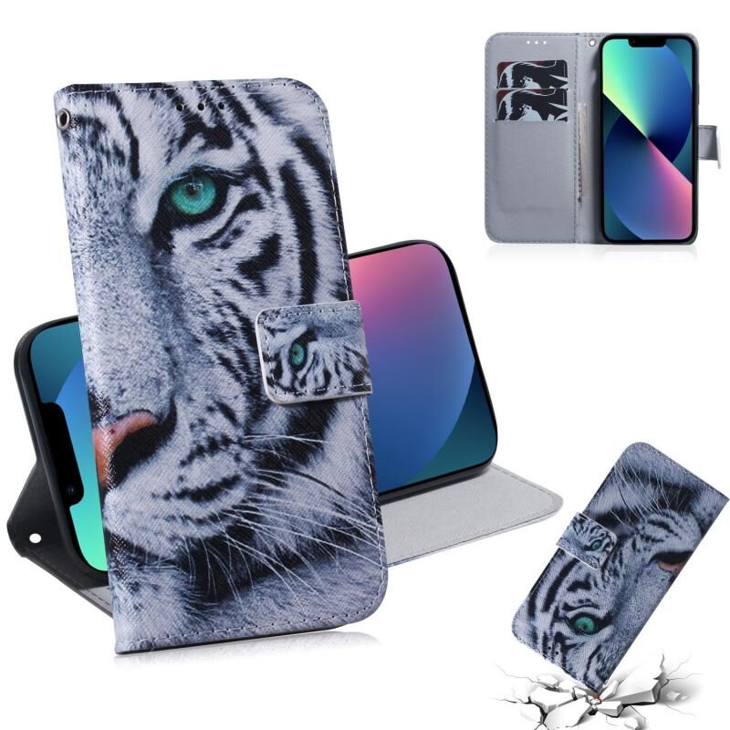 For iPhone 13 mini Coloured Drawing Horizontal Flip Leather Case, with Holder & Card Slots & Wallet (Tiger)