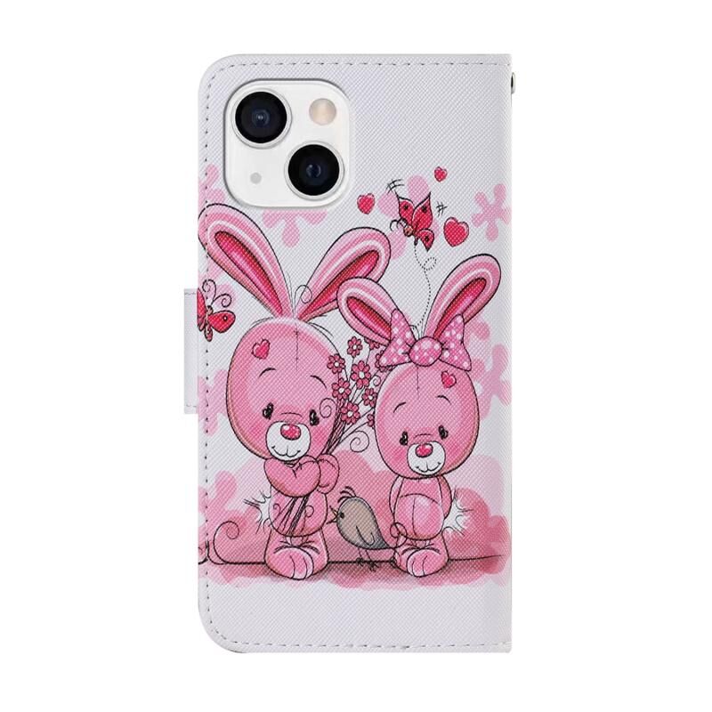 Θήκη τηλεφώνου από δέρμα με σχέδιο πολύχρωμης ζωγραφικής για iPhone 13 mini (Χαριτωτό Κουνελάκι)