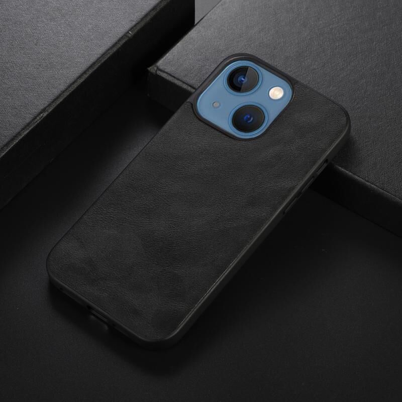 Θήκη τηλεφώνου για iPhone 13 mini με υφή δέρματος αγελάδας από PU (Μαύρο)