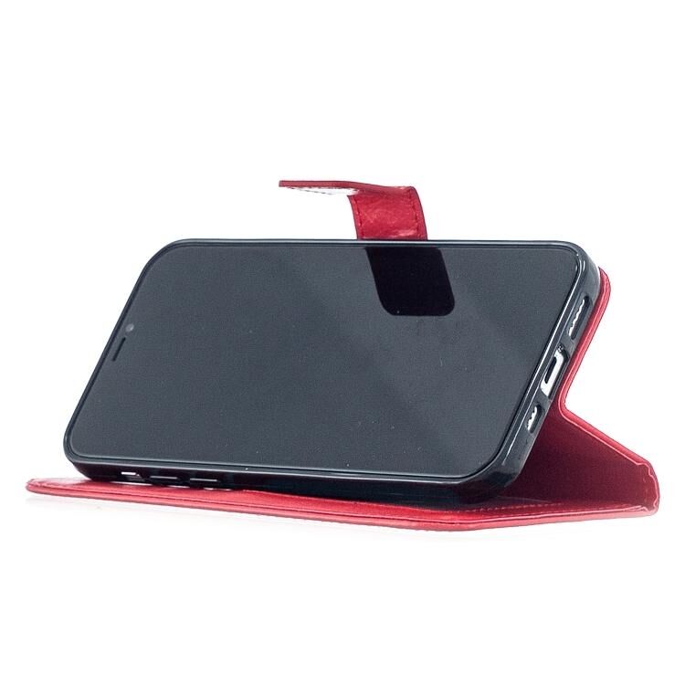 Θήκη δέρματος οριζόντιας αναδίπλωσης με υφή Crazy Horse για iPhone 13 mini με βάση, θήκες καρτών, πορτοφόλι & κορνίζα φωτογραφιών (Κόκκινο)