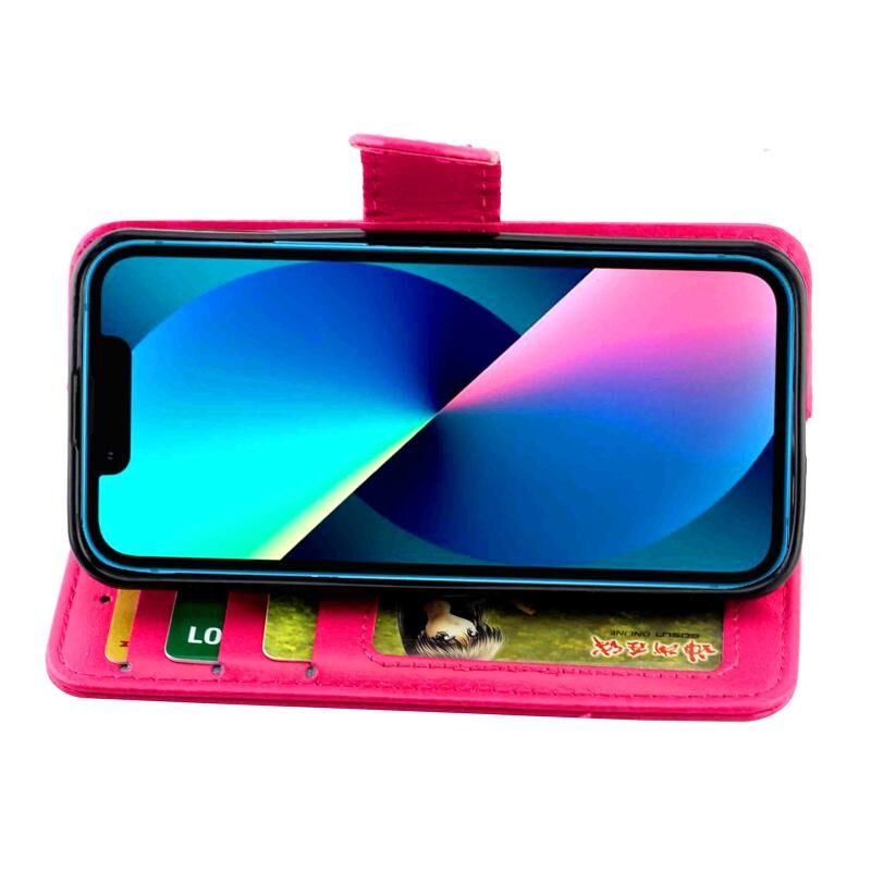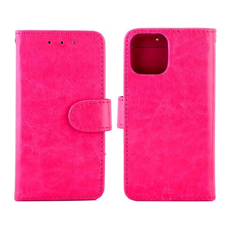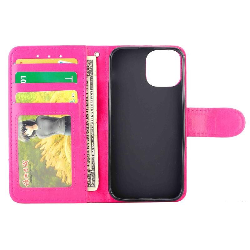 For iPhone 13 mini Crazy Horse Texture Leather Horizontal Flip Protective Case with Holder & Card Slots & Wallet & Photo Frame (Magenta)