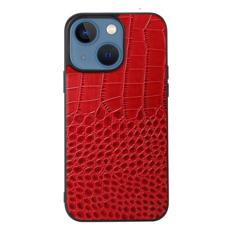 Θήκη για iPhone 13 mini από γνήσιο δέρμα αγελάδας με επικάλυψη κροκόδειλου (Μαύρο)