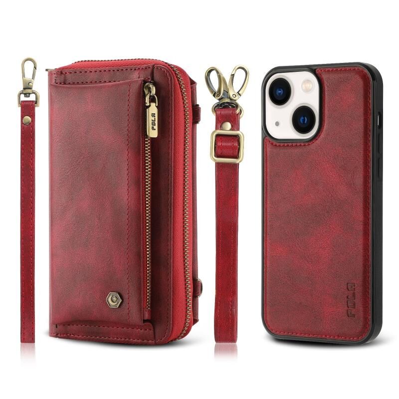 For iPhone 13 mini Crossbody Multi-functional Zipper Wallet Leather Phone Case(Red)