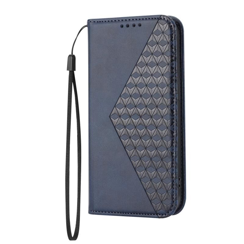 Θήκη τηλεφώνου δερμάτινη με μαγνητικό κλείσιμο, υφή μοσχαρίσιου δέρματος, κυβικό πλέγμα για iPhone 13 mini (Μαύρο)