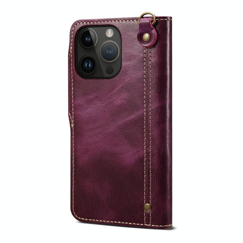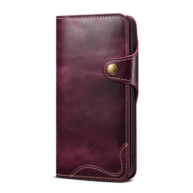 For iPhone 13 mini Denior Oil Wax Cowhide Magnetic Button Genuine Leather Case (Purple) (Denior)