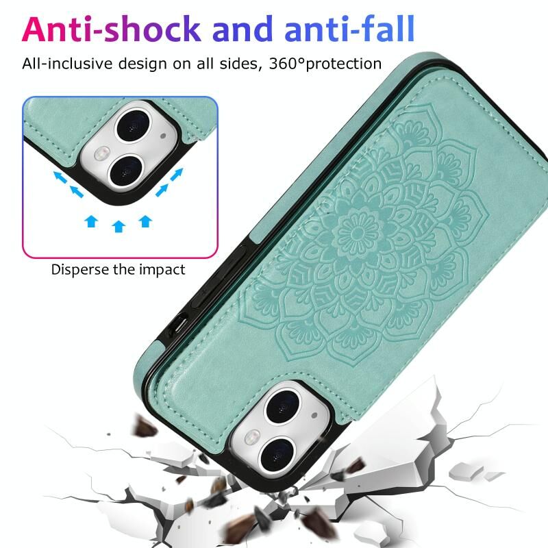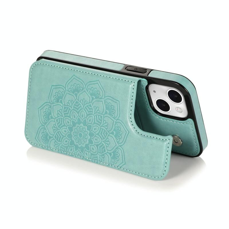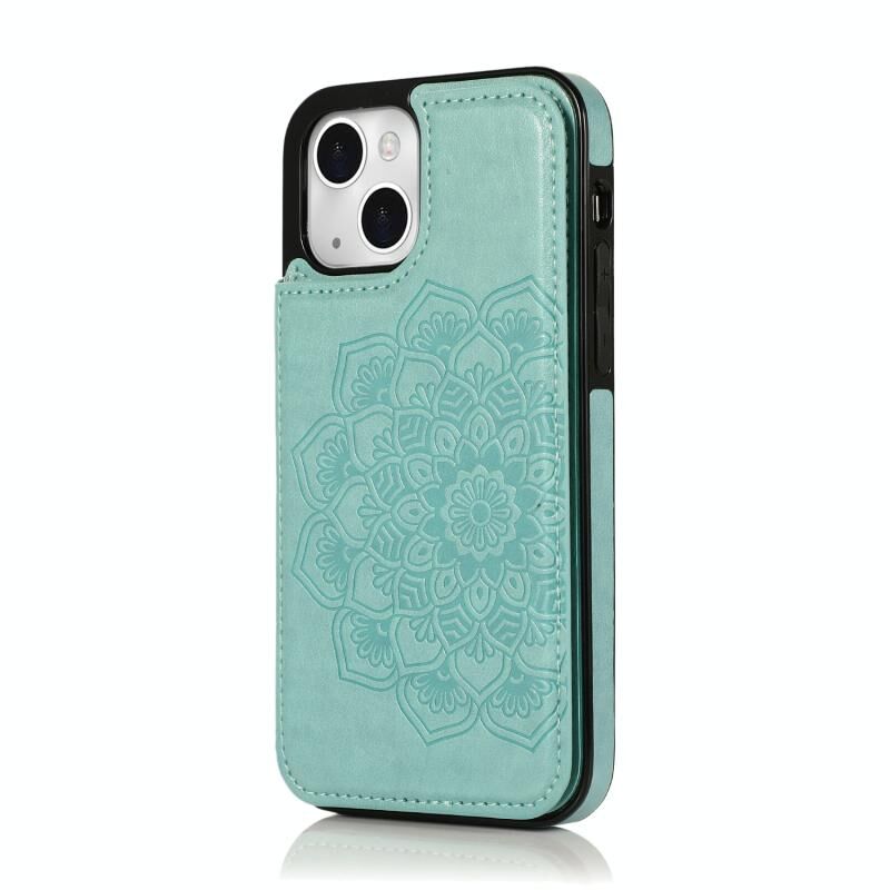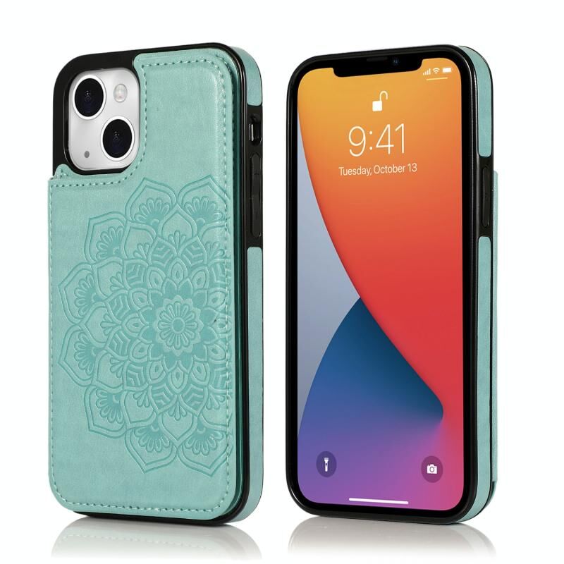 For iPhone 13 mini Double Buckle Mandala Pattern PU+TPU Protective Case with Card Slots & Holder & Photo Frame (Green)