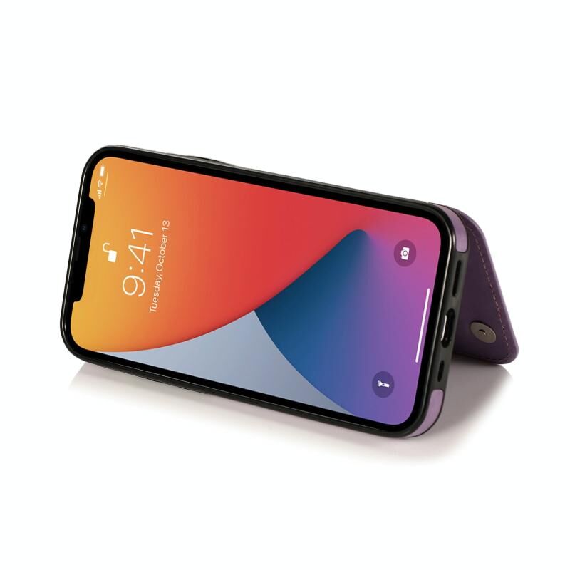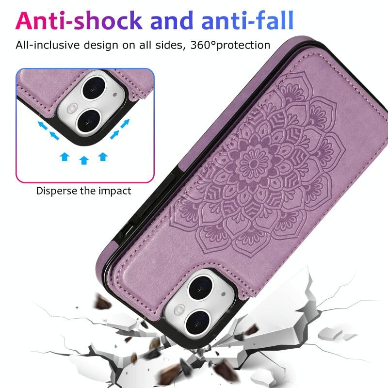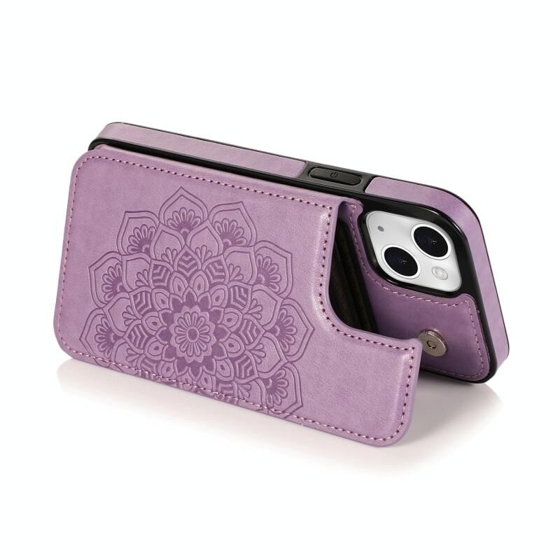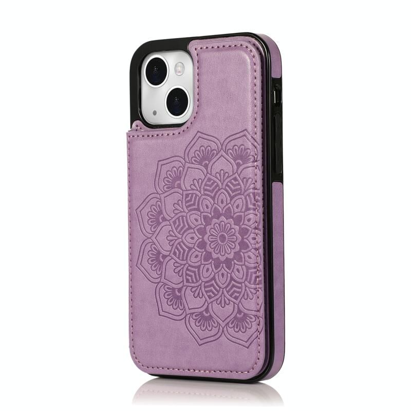 For iPhone 13 mini Double Buckle Mandala Pattern PU+TPU Protective Case with Card Slots & Holder & Photo Frame (Purple)