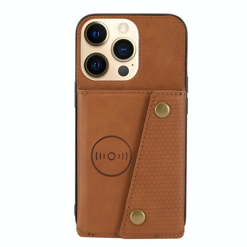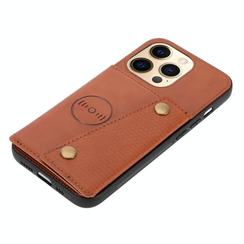 For iPhone 13 mini Double Buckle PU + TPU Shockproof Magnetic Protective Case with Card Slot & Holder (Light Brown)
