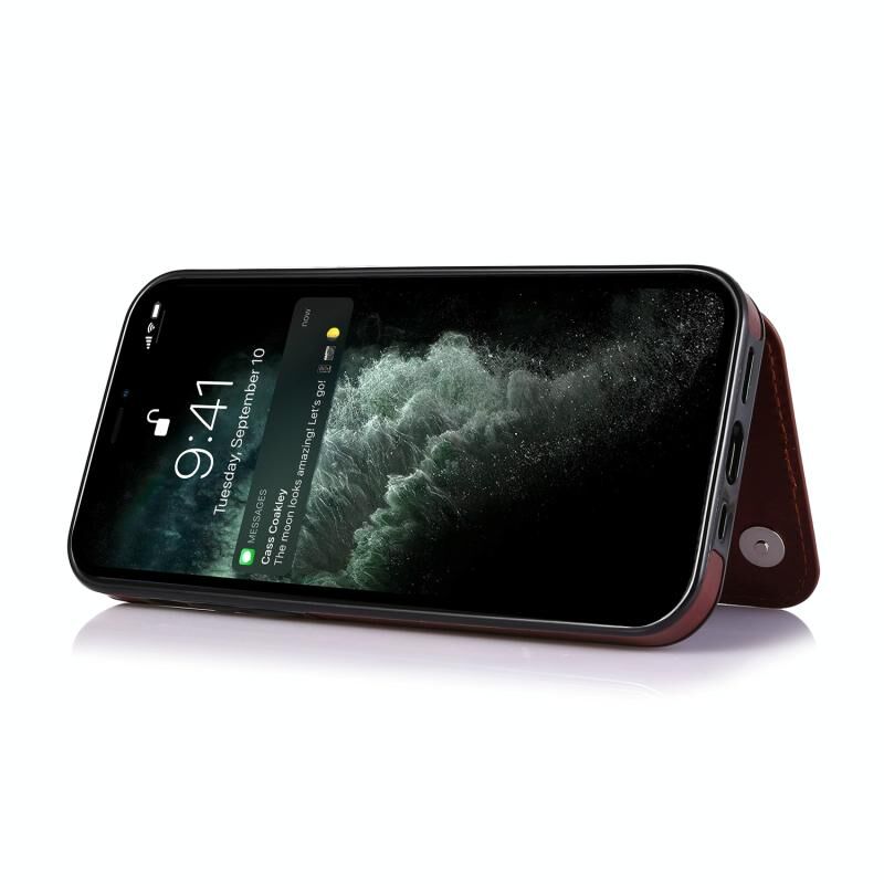 For iPhone 13 mini Double Buckle Shockproof PU Protective Case with Card Slots & Holder For iPhone 13 Mini(Brown)