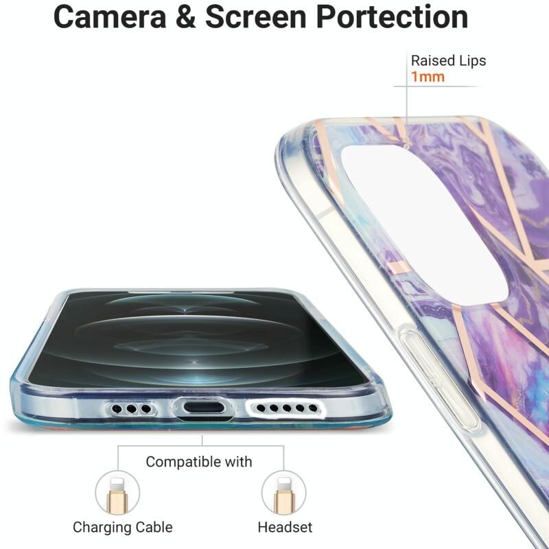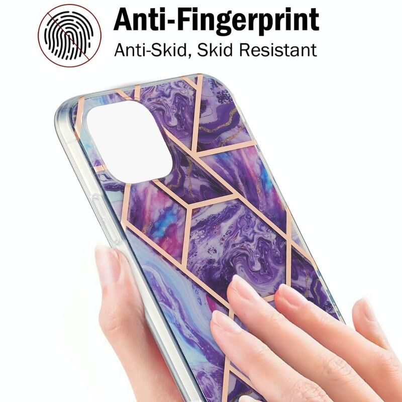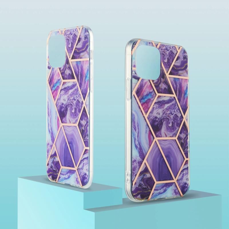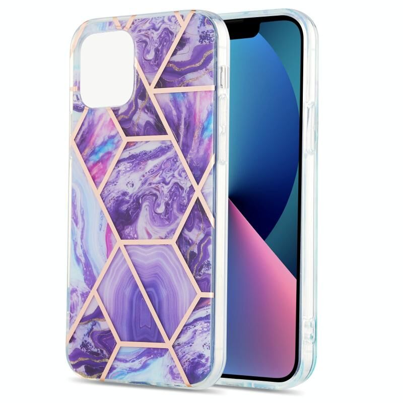 For iPhone 13 mini Electroplating Splicing Marble Flower Pattern Dual-side IMD TPU Shockproof Case (Dark Purple)
