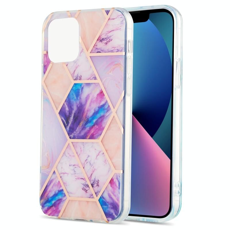 Θήκη για iPhone 13 mini με ηλεκτρολυτική επιμετάλλωση, συνδυασμό μαρμάρου και λουλουδιών, διπλής όψης IMD TPU αντικραδασμική (Ροζ Λευκό)