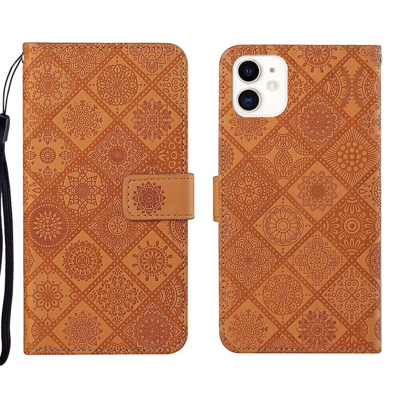 For iPhone 13 mini Ethnic Style Embossed Pattern Leather Phone Case (Brown)