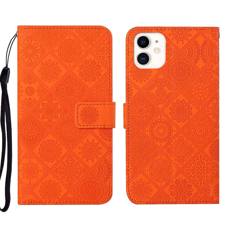 For iPhone 13 mini Ethnic Style Embossed Pattern Leather Phone Case (Orange)
