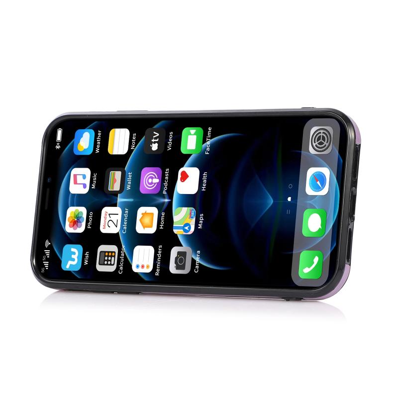 For iPhone 13 mini Fashion Buckle Protective Case with Holder & Card Slot & Wallet & Lanyard (Purple)