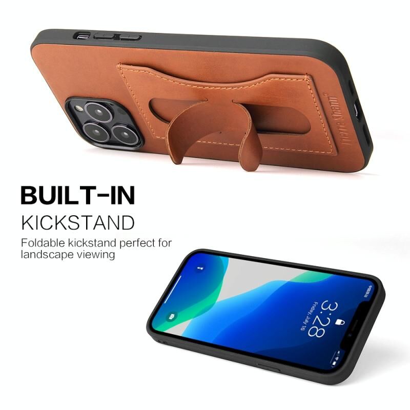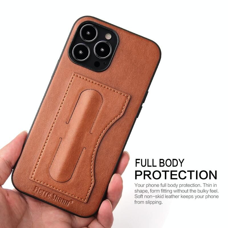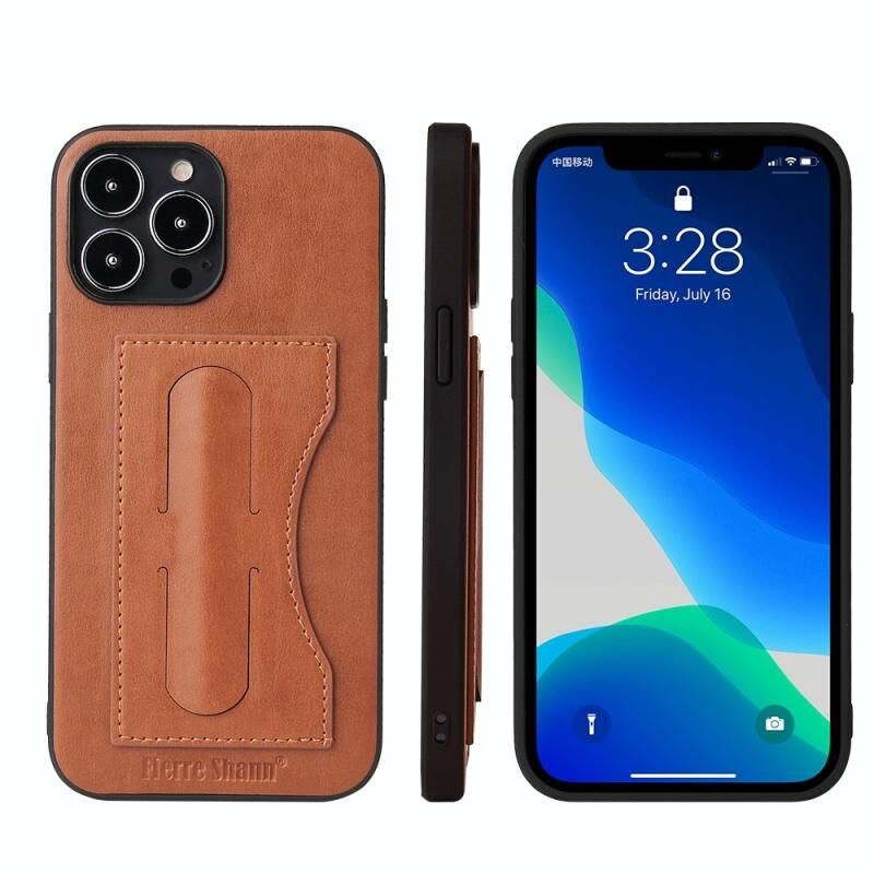 For iPhone 13 mini Fierre Shann Full Coverage Protective Leather Case with Holder & Card Slot (Brown) (FIERRE SHANN)