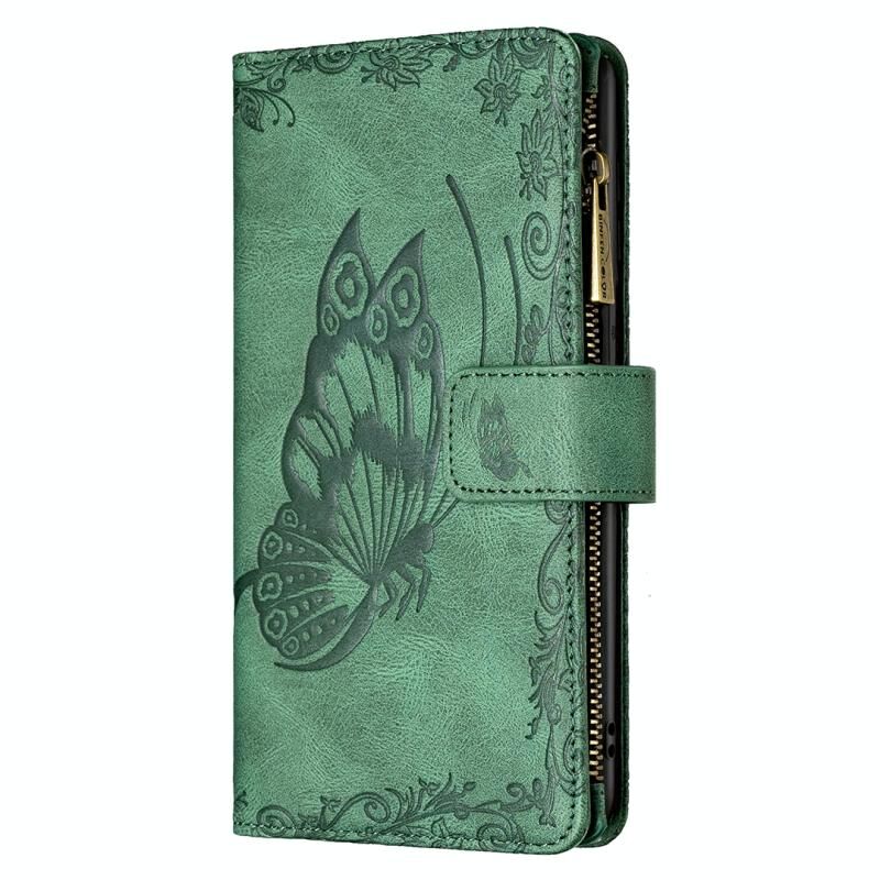 Θήκη για iPhone 13 mini με ανάγλυφο σχέδιο πεταλούδας, οριζόντια, δερμάτινη με φερμουάρ, με θήκη & υποδοχές καρτών & πορτοφόλι (Μπλε)