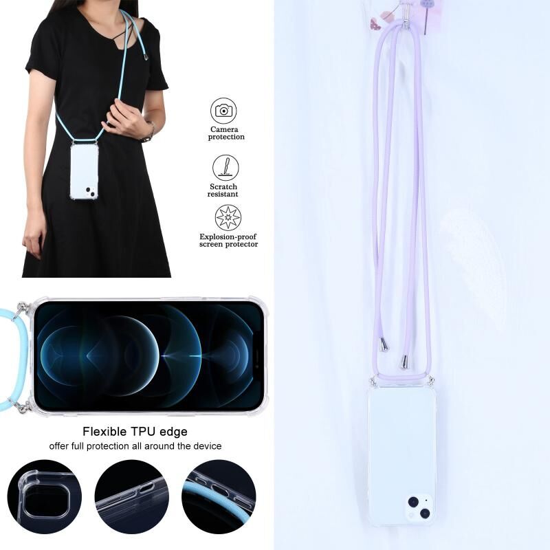 Θήκη προστασίας για iPhone 13 mini, διαφανής από TPU, αντικραδασμική σε τέσσερις γωνίες, με κορδόνι (ανοιχτό μωβ)
