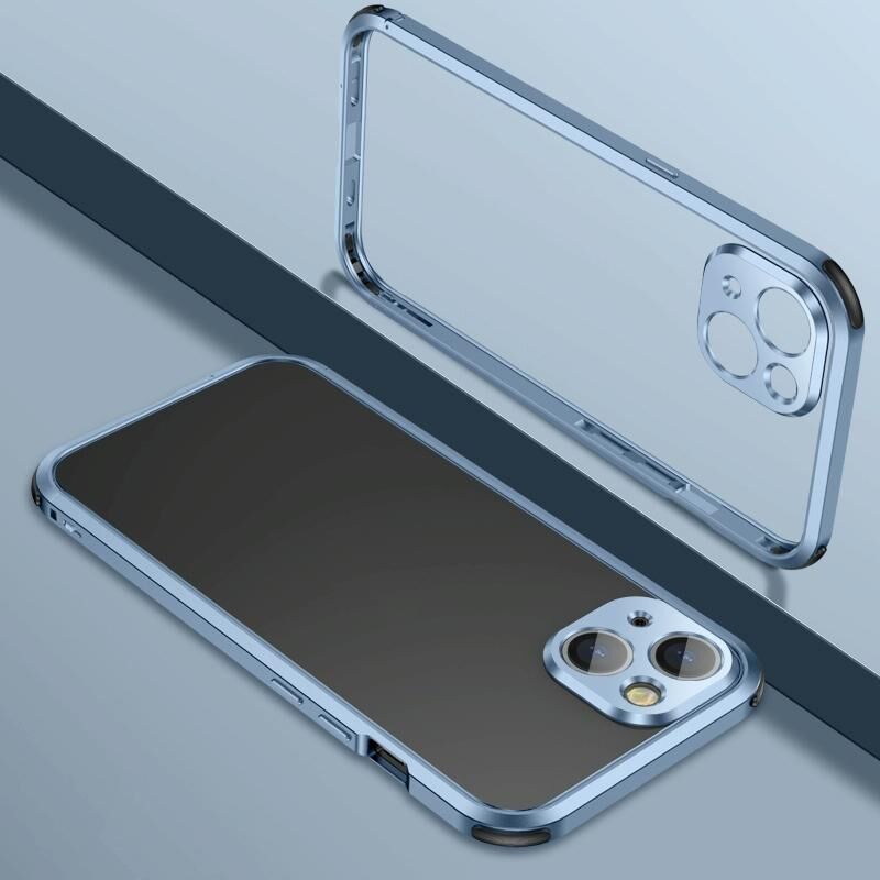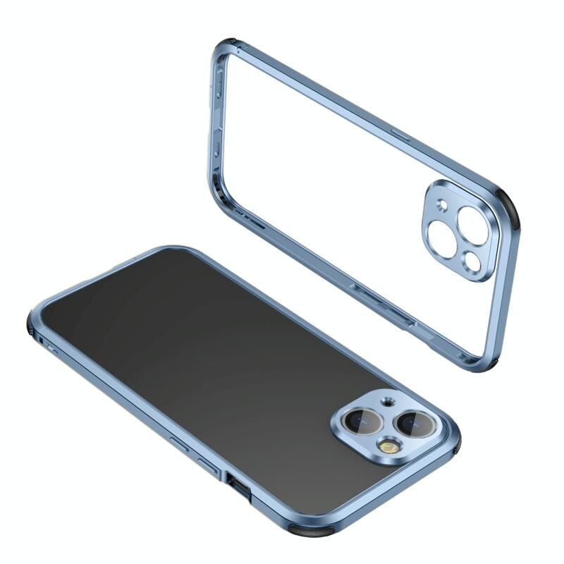 For iPhone 13 mini Four Corners Shockproof Metal Frame Phone Case (Sierra Blue)