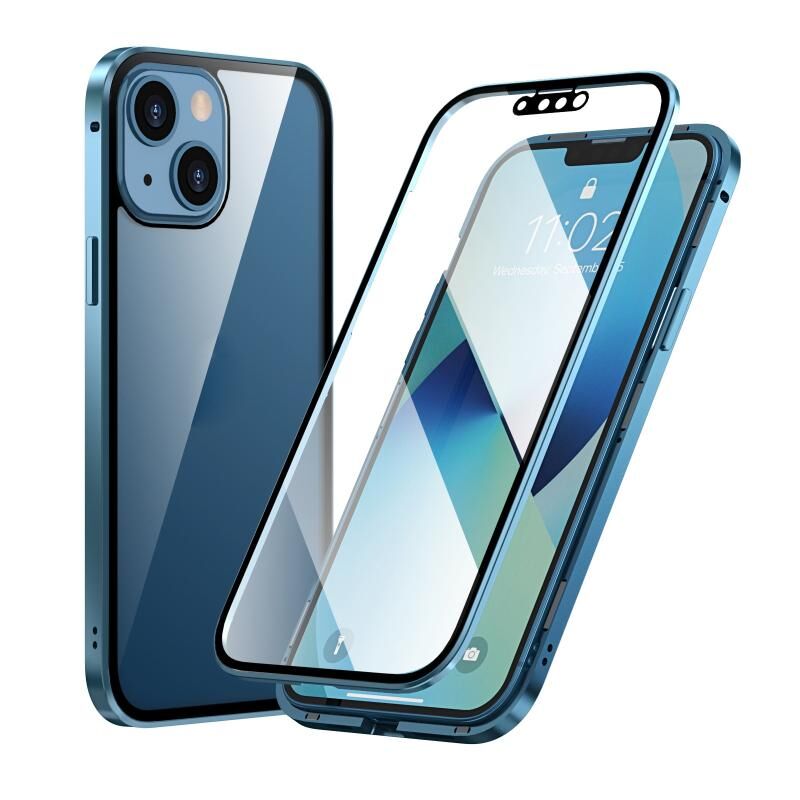 Θήκη κινητού τηλεφώνου για iPhone 13 mini, HD, Μαγνητικό μεταλλικό πλαίσιο, Διπλής όψης από σκληρυμένο γυαλί (Μαύρο)