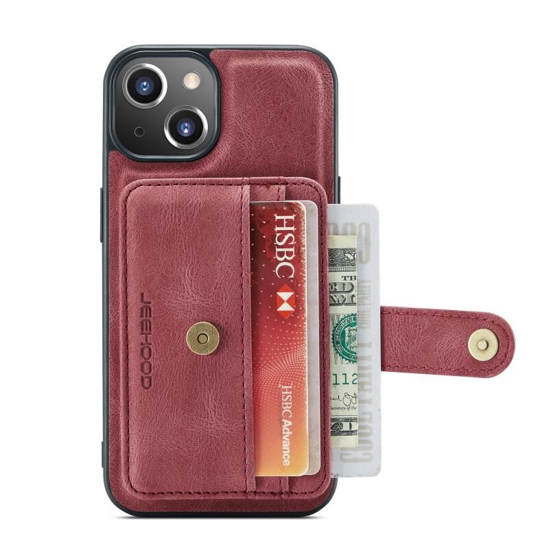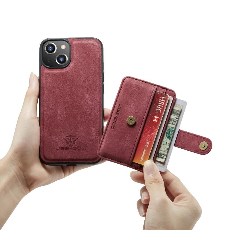 For iPhone 13 mini JEEHOOD Anti-theft Brush Magnetic PU + TPU Protective Case with Card Slot (Red) (JEEHOOD)