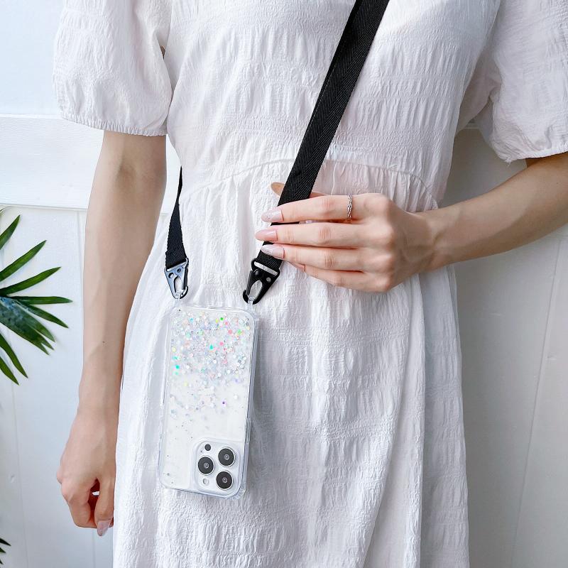 Θήκη iPhone 13 mini με Λουρί, Glitter, Διαφανές Epoxy (Μπλε)