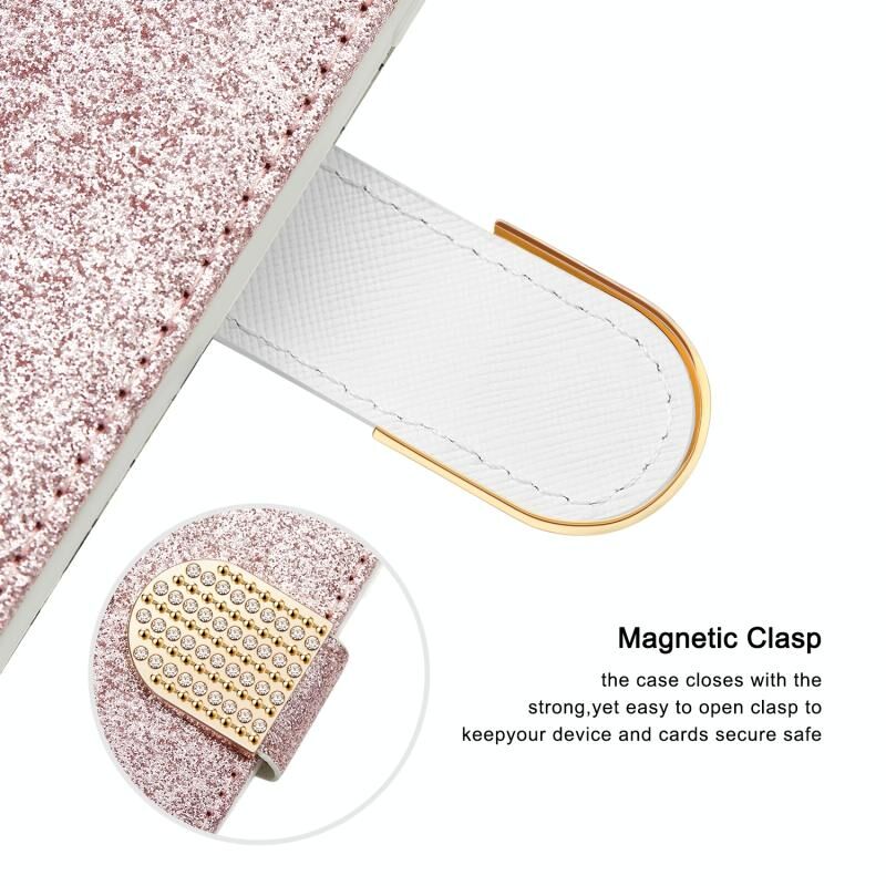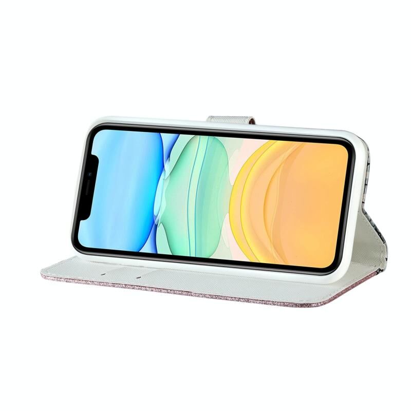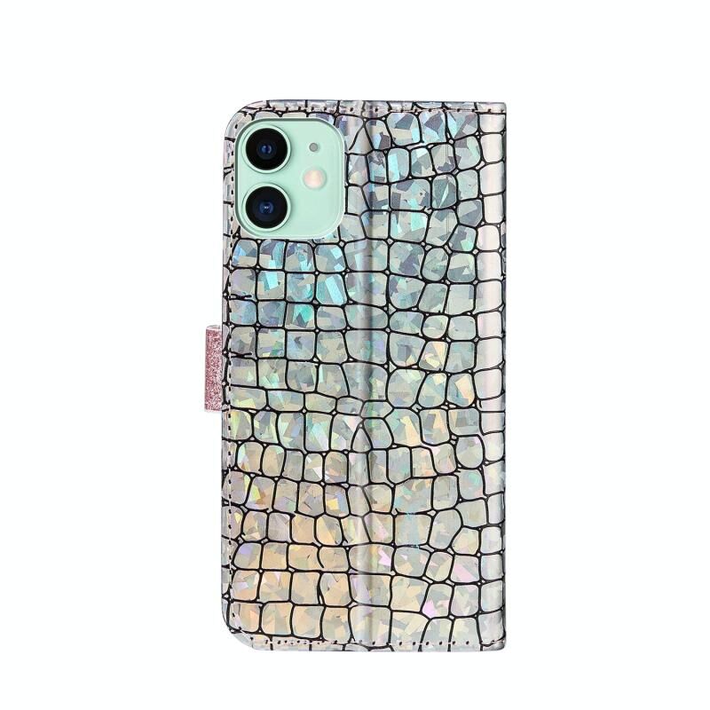Θήκη δέρματος οριζόντιας αναδίπλωσης για iPhone 13 mini με σκόνη laser glitter, υφή κροκόδειλου, θήκες για κάρτες, βάση στήριξης & πορτοφόλι (Ασημί)