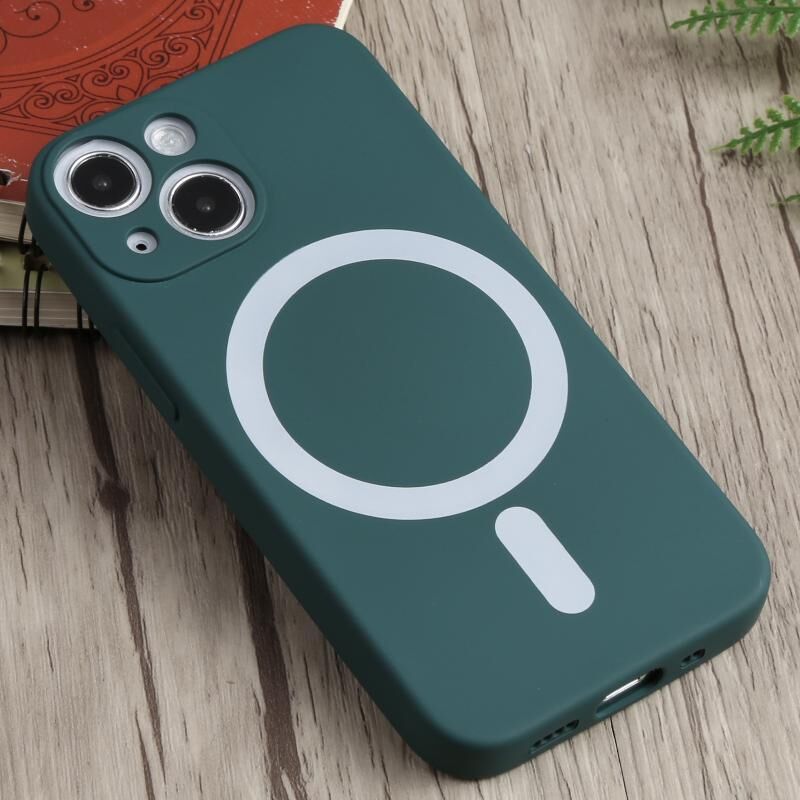 For iPhone 13 mini Liquid Silicone Shockproof Magsafe Case (Deep Green)