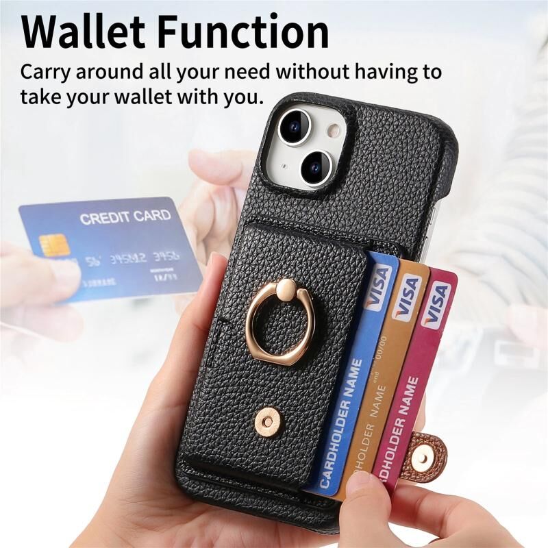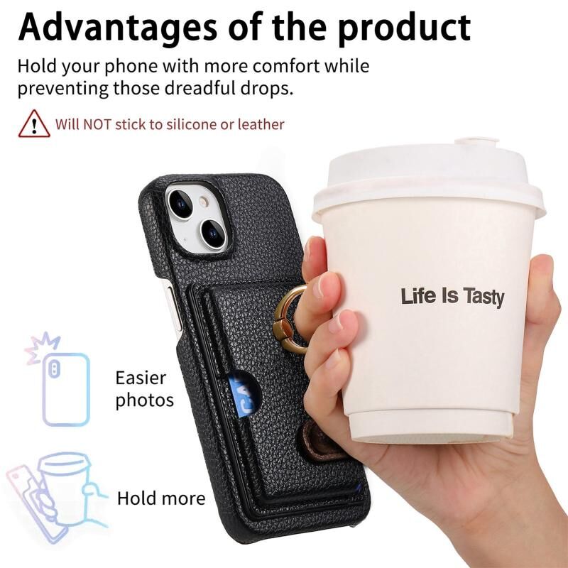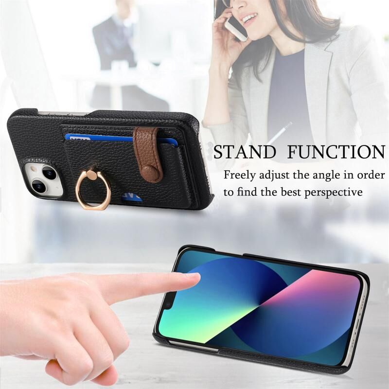 Θήκη τηλεφώνου για iPhone 13 mini από δέρμα Litchi με λεπτή άκρη και θήκη για κάρτες στην πλάτη (Καφέ)