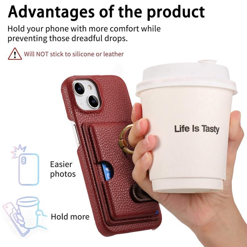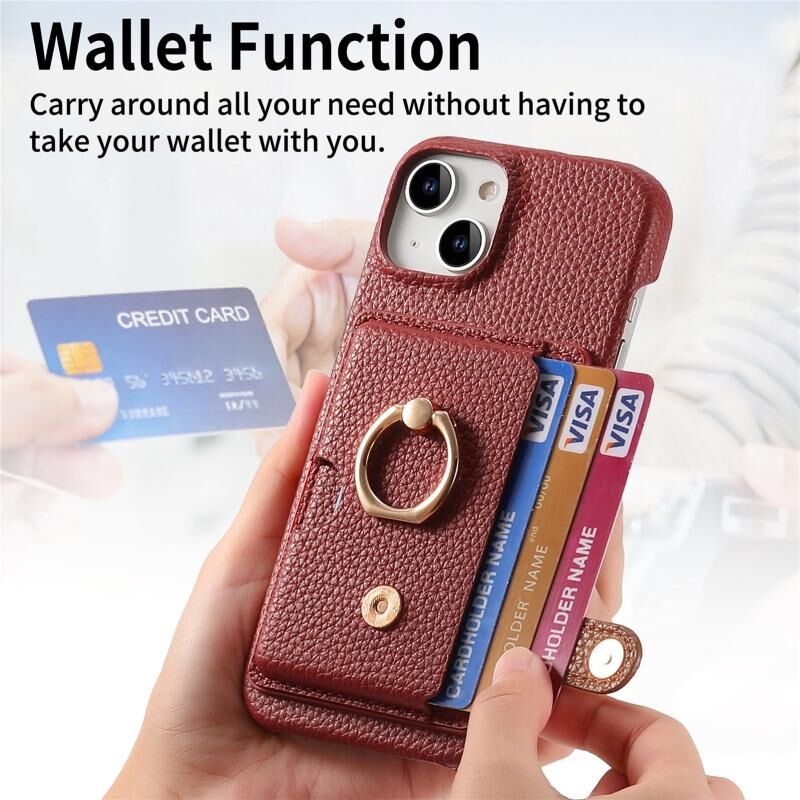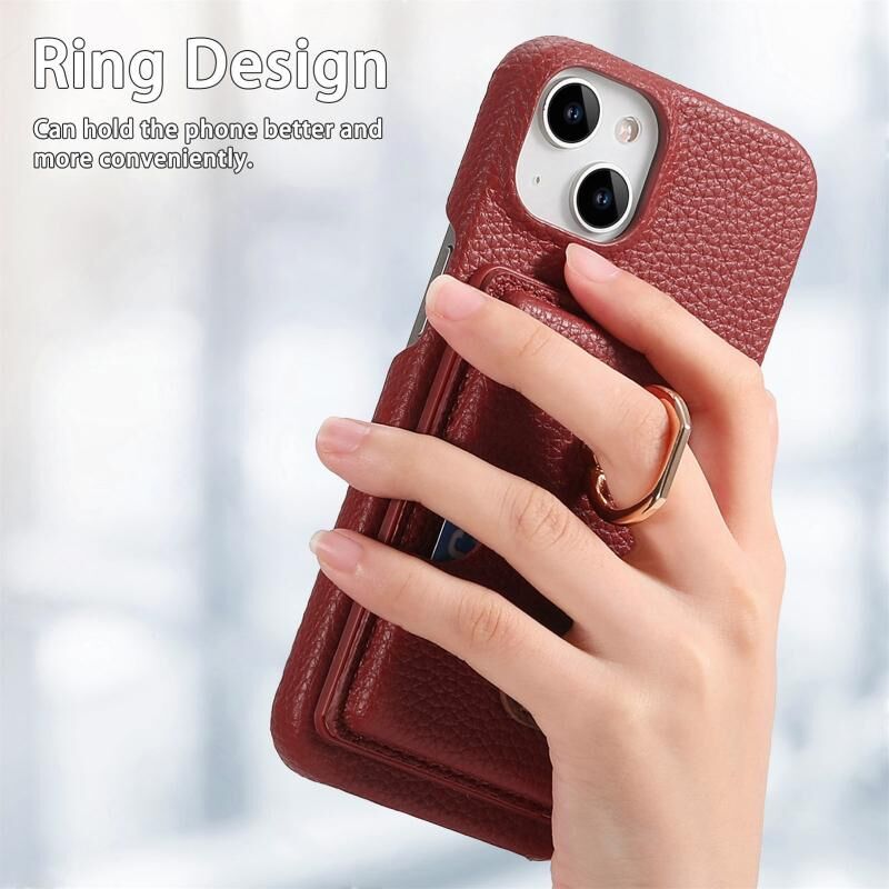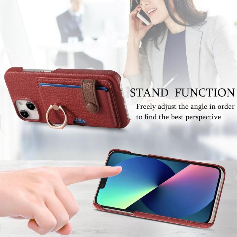 Θήκη τηλεφώνου για iPhone 13 mini από δέρμα Litchi με λεπτή άκρη και θήκη για κάρτες στην πλάτη (Καφέ)