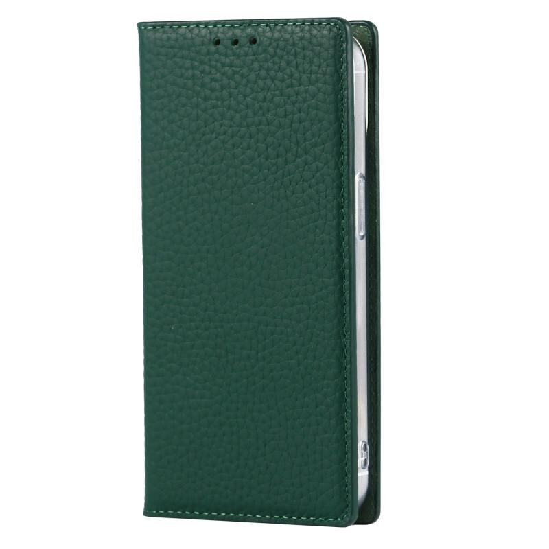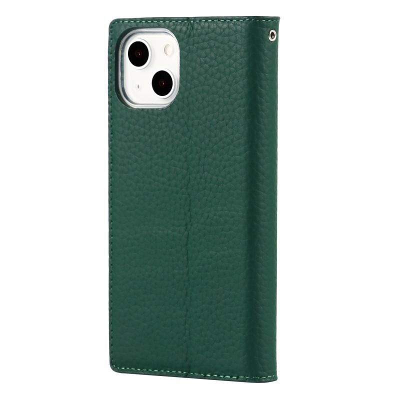 For iPhone 13 mini Litchi Texture Genuine Leather Phone Case With Lanyard & Holder & Card Slots & Wallet (Dark Green)