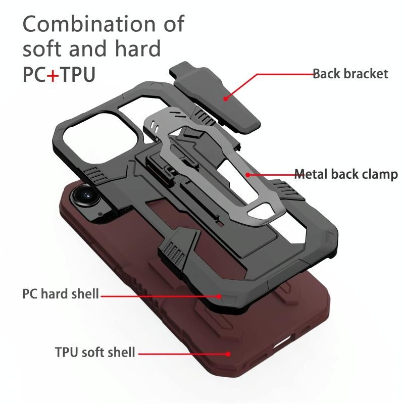 Θήκη Προστασίας για iPhone 13 mini Machine Armor Warrior Ανθεκτική σε Κραδασμούς από PC + TPU (Καφέ)