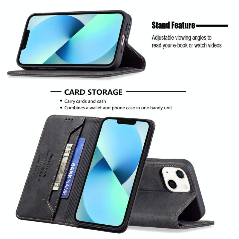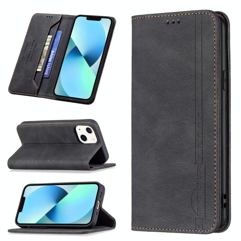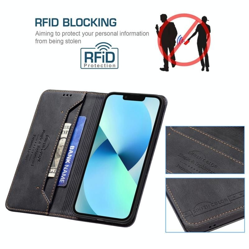 For iPhone 13 mini Magnetic RFID Blocking Anti-Theft Leather Case with Holder & Card Slots & Wallet (Black)