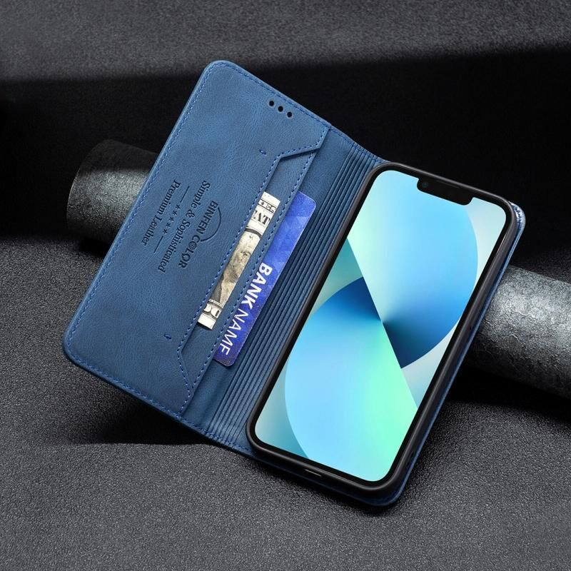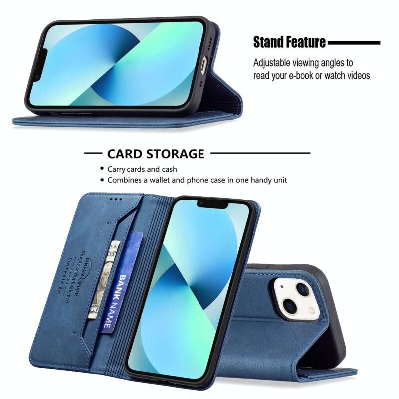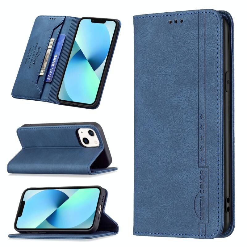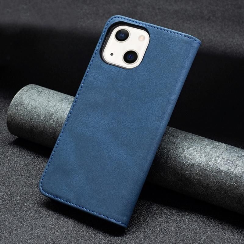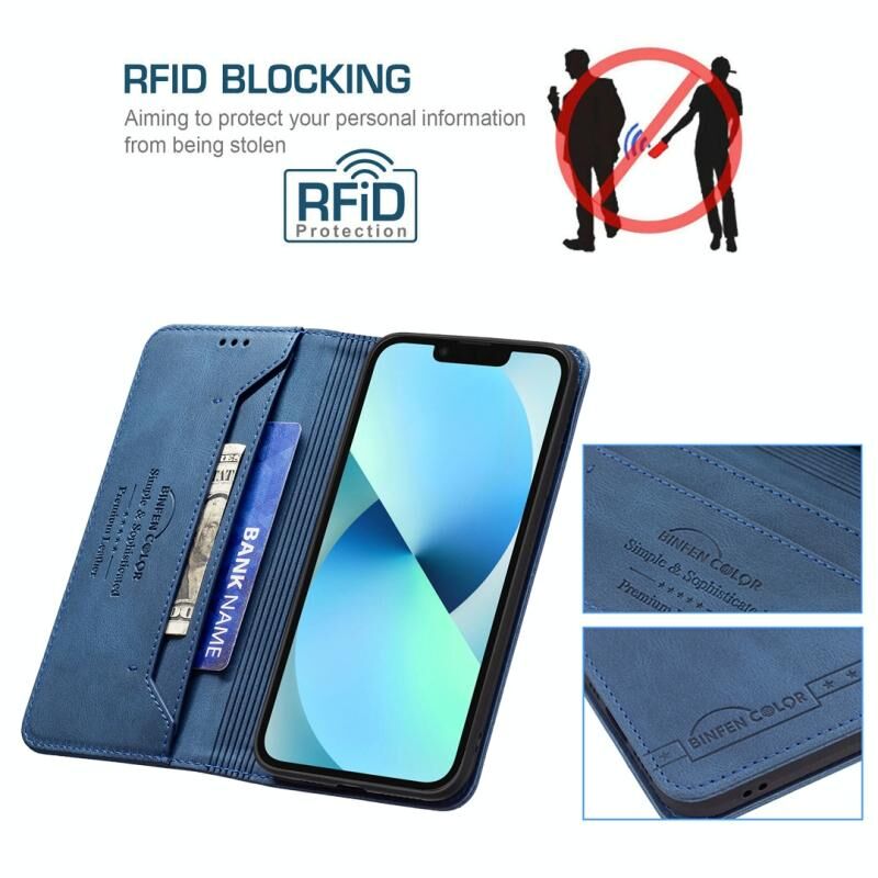 For iPhone 13 mini Magnetic RFID Blocking Anti-Theft Leather Case with Holder & Card Slots & Wallet (Blue)
