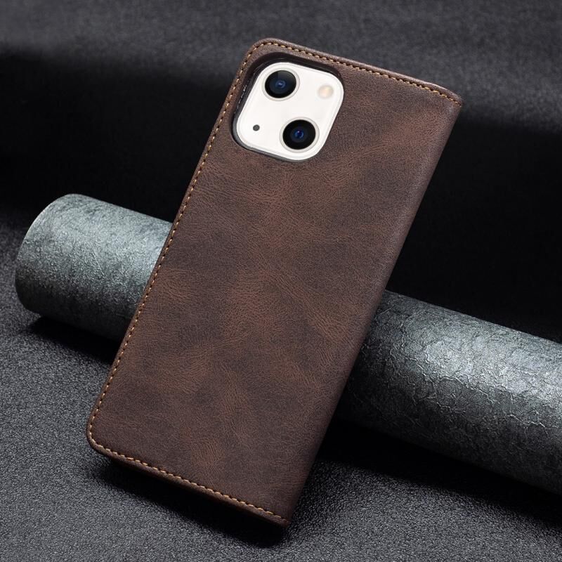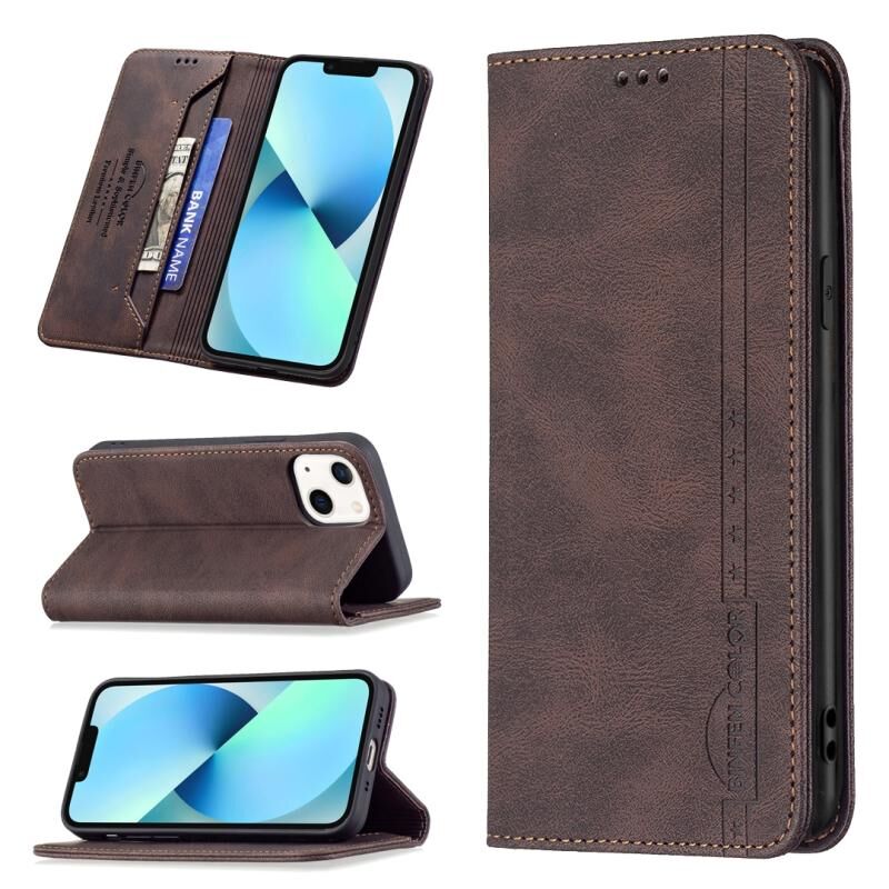 For iPhone 13 mini Magnetic RFID Blocking Anti-Theft Leather Case with Holder & Card Slots & Wallet (Brown)