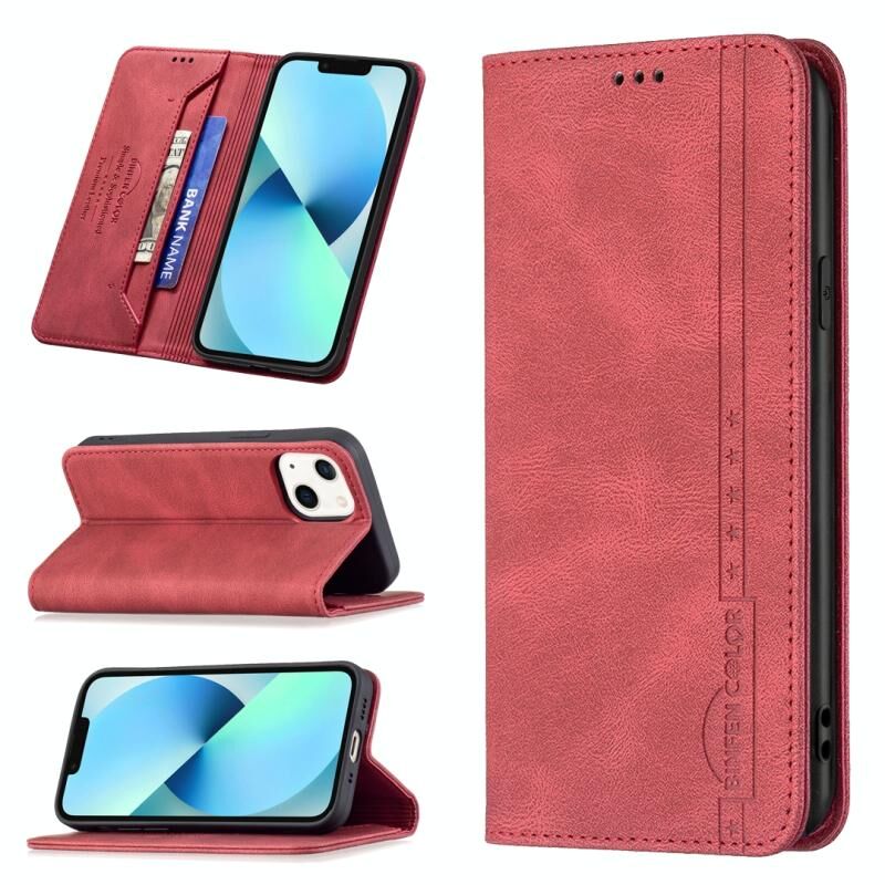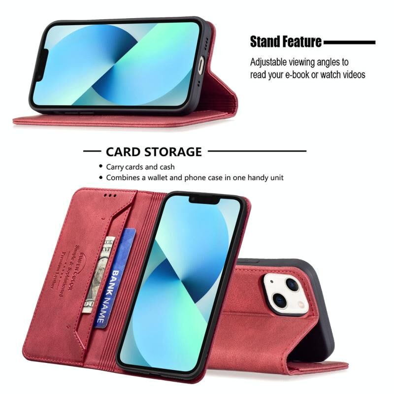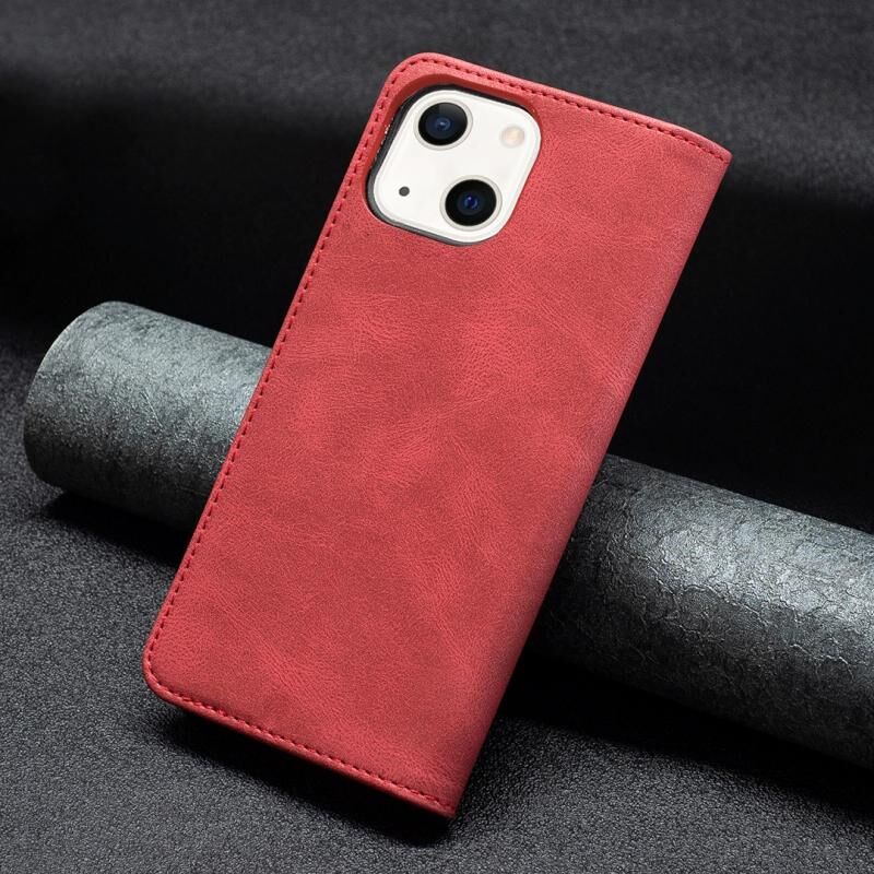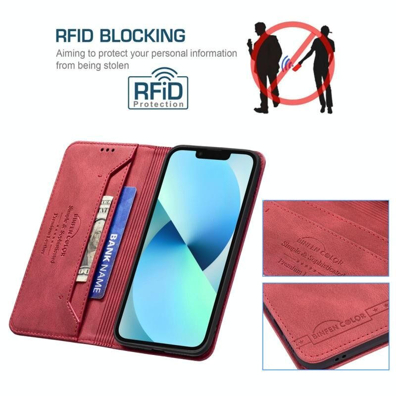 For iPhone 13 mini Magnetic RFID Blocking Anti-Theft Leather Case with Holder & Card Slots & Wallet (Red)