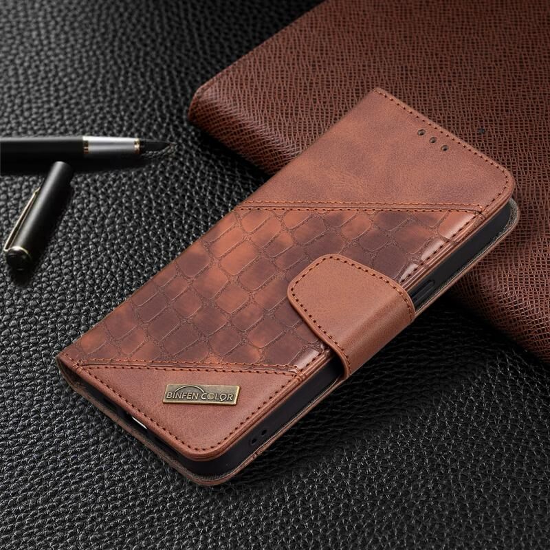 Θήκη για iPhone 13 mini σε ταίριαστο χρώμα με υφή κροκόδειλου, οριζόντια αναδιπλούμενη από δερματίνη PU με πορτοφόλι & βάση & θήκες για κάρτες (Καφέ)