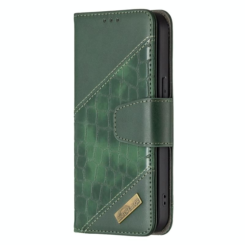 Θήκη για iPhone 13 mini σε ταίριαστο χρώμα με υφή κροκόδειλου, οριζόντια αναδιπλούμενη από δερματίνη PU με πορτοφόλι & βάση & θήκες για κάρτες (πράσινο)