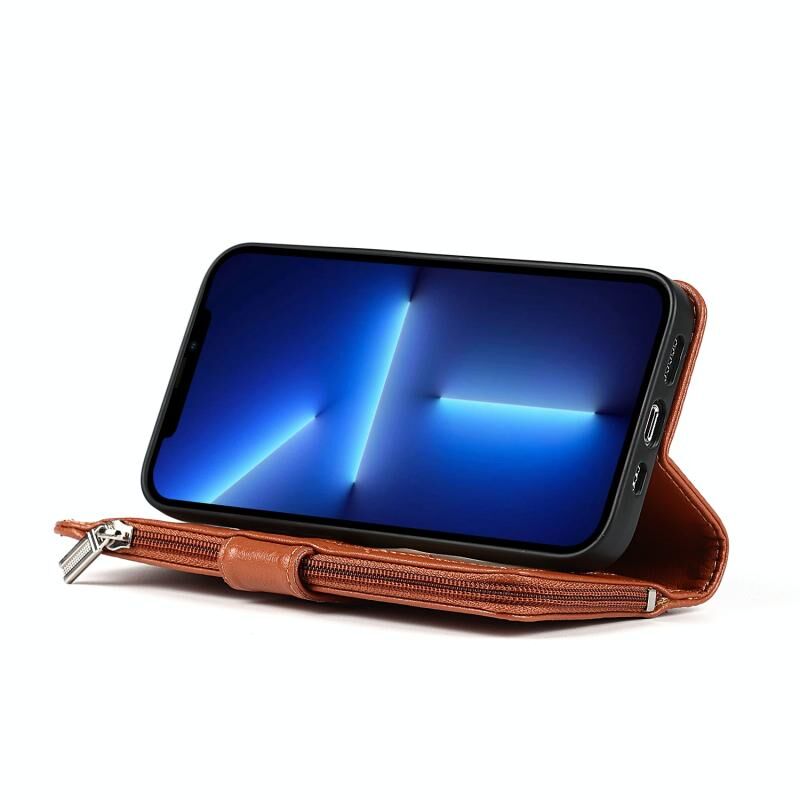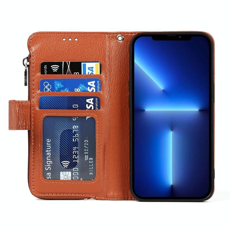 Θήκη δέρματος οριζόντιας αναδίπλωσης με φερμουάρ και μικροΐνες για iPhone 13 mini με θήκη & υποδοχές καρτών & πορτοφόλι (Μαύρο)