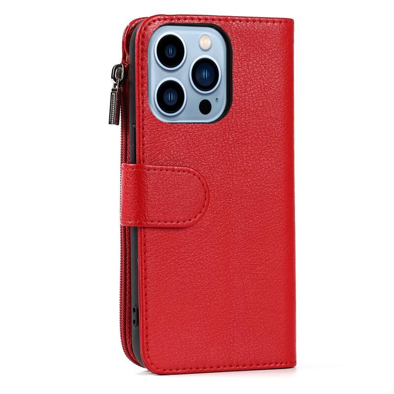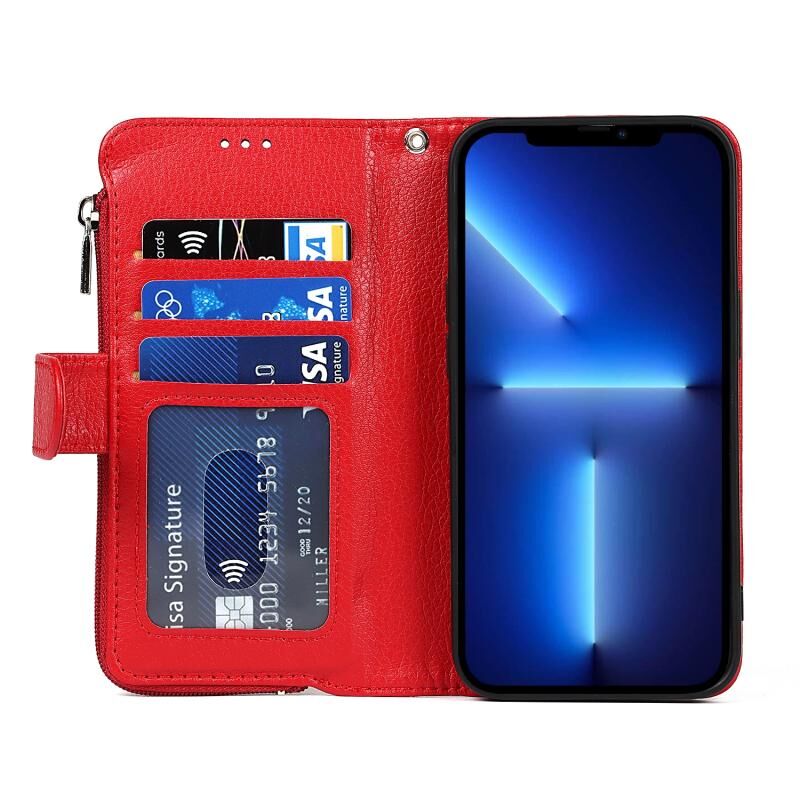 Θήκη δέρματος οριζόντιας αναδίπλωσης με φερμουάρ και μικροΐνες για iPhone 13 mini με θήκη & υποδοχές καρτών & πορτοφόλι (Μαύρο)