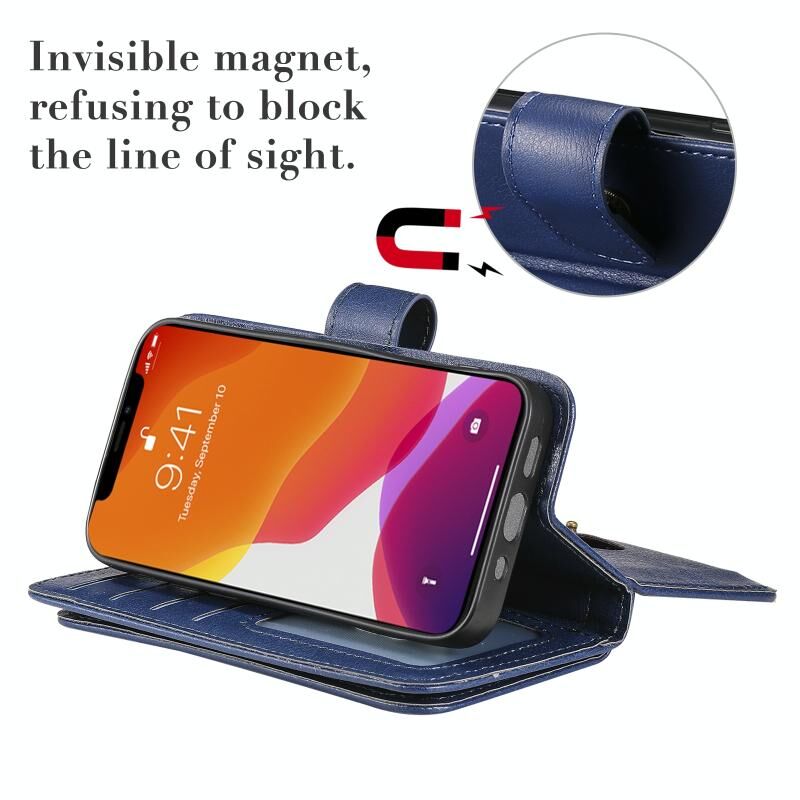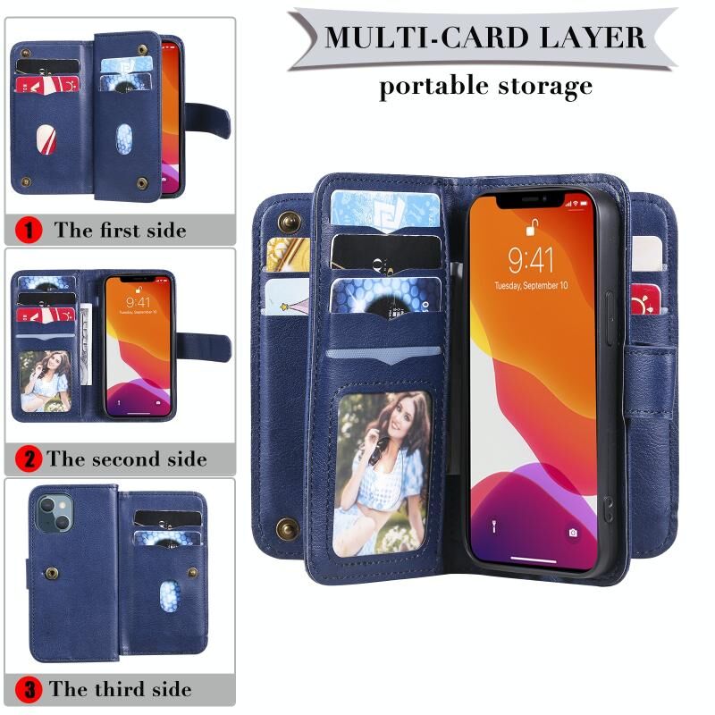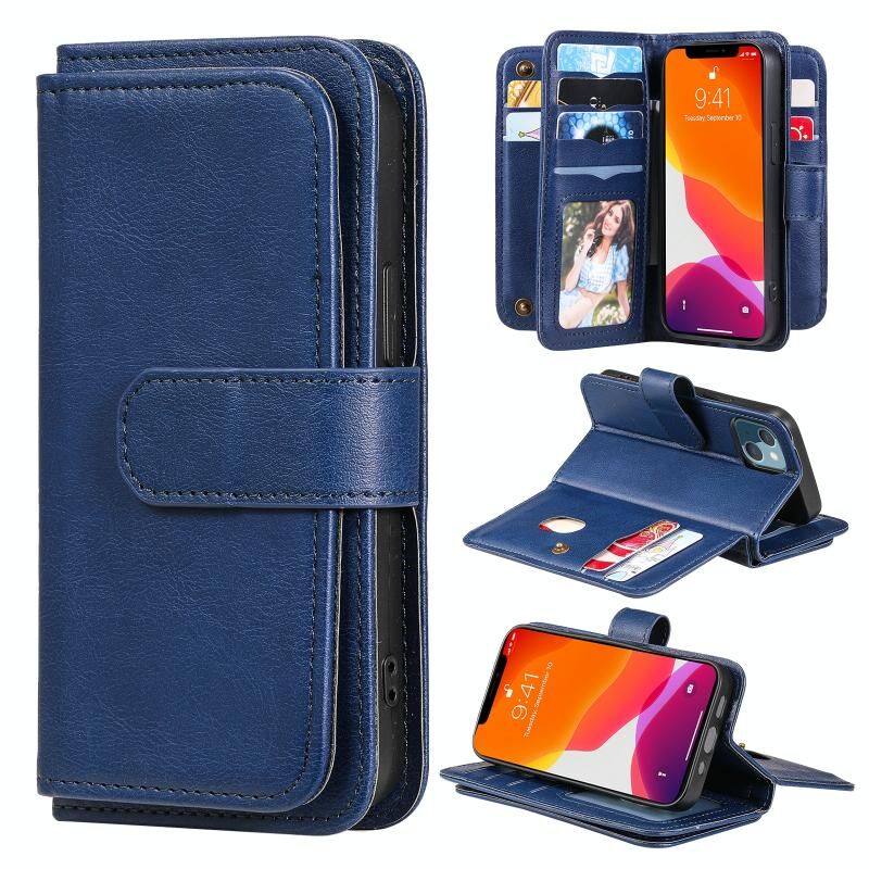 For iPhone 13 mini Multifunctional Magnetic Copper Buckle Horizontal Flip Solid Color Leather Case with 10 Card Slots & Wallet & Holder & Photo Frame (Dark Blue)