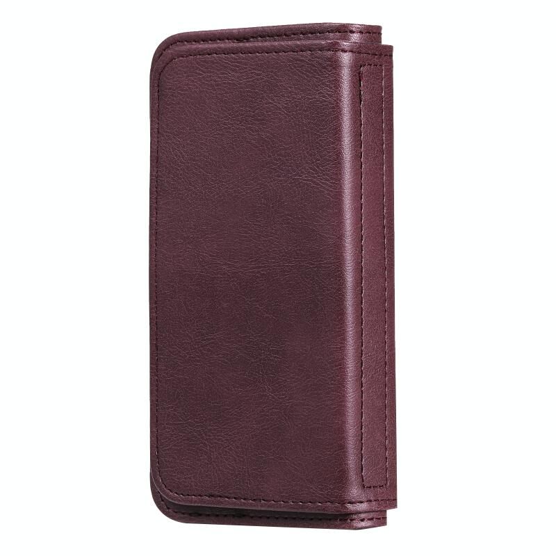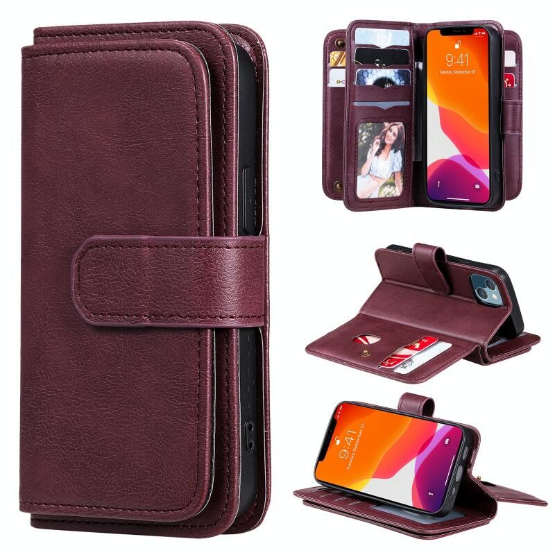 For iPhone 13 mini Multifunctional Magnetic Copper Buckle Horizontal Flip Solid Color Leather Case with 10 Card Slots & Wallet & Holder & Photo Frame (Wine Red)
