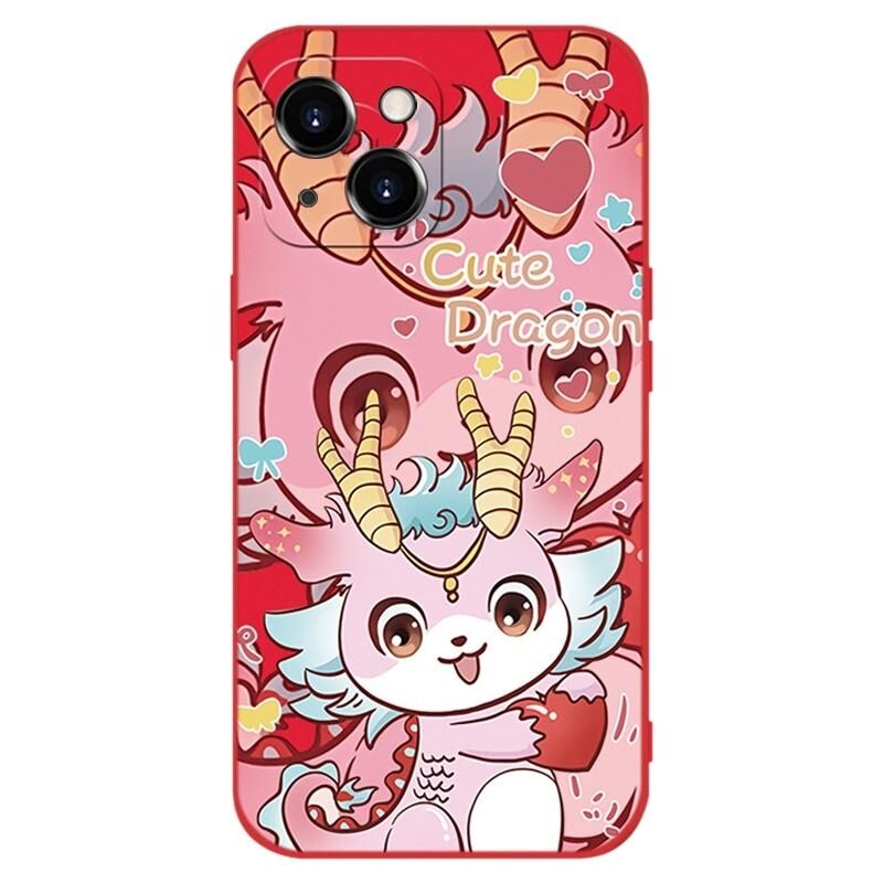 Θήκη σιλικόνης για iPhone 13 mini, αντικραδασμική, κόκκινη για το Νέο Έτος (Χαριτωμένος Ροζ Δράκος)