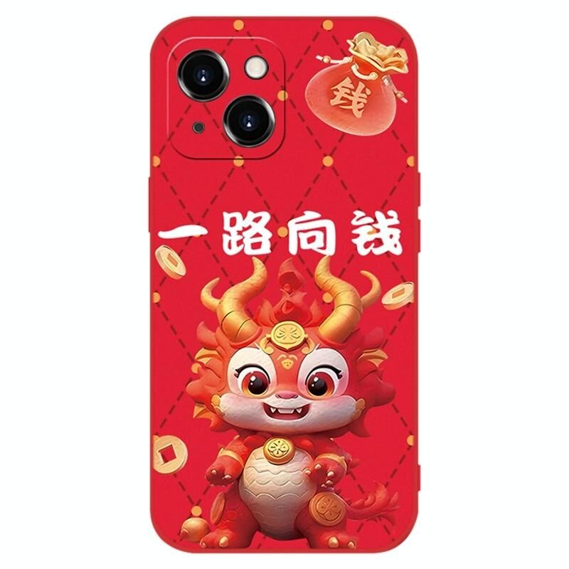 Θήκη σιλικόνης για iPhone 13 mini, κόκκινη, αντικραδασμική, με σχέδιο Δράκος της Τύχης για το Νέο Έτος.